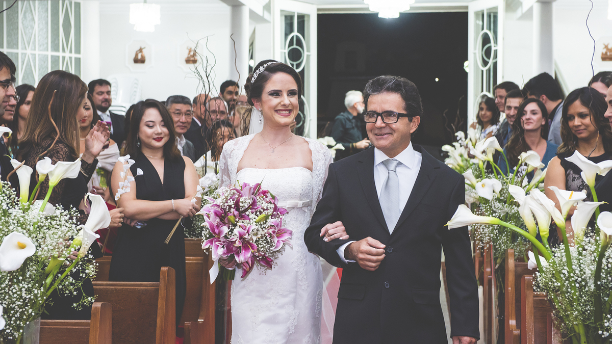 Plano geral dos noivos, plano em que o corpo aparece por inteiro, dos pés à cabeça