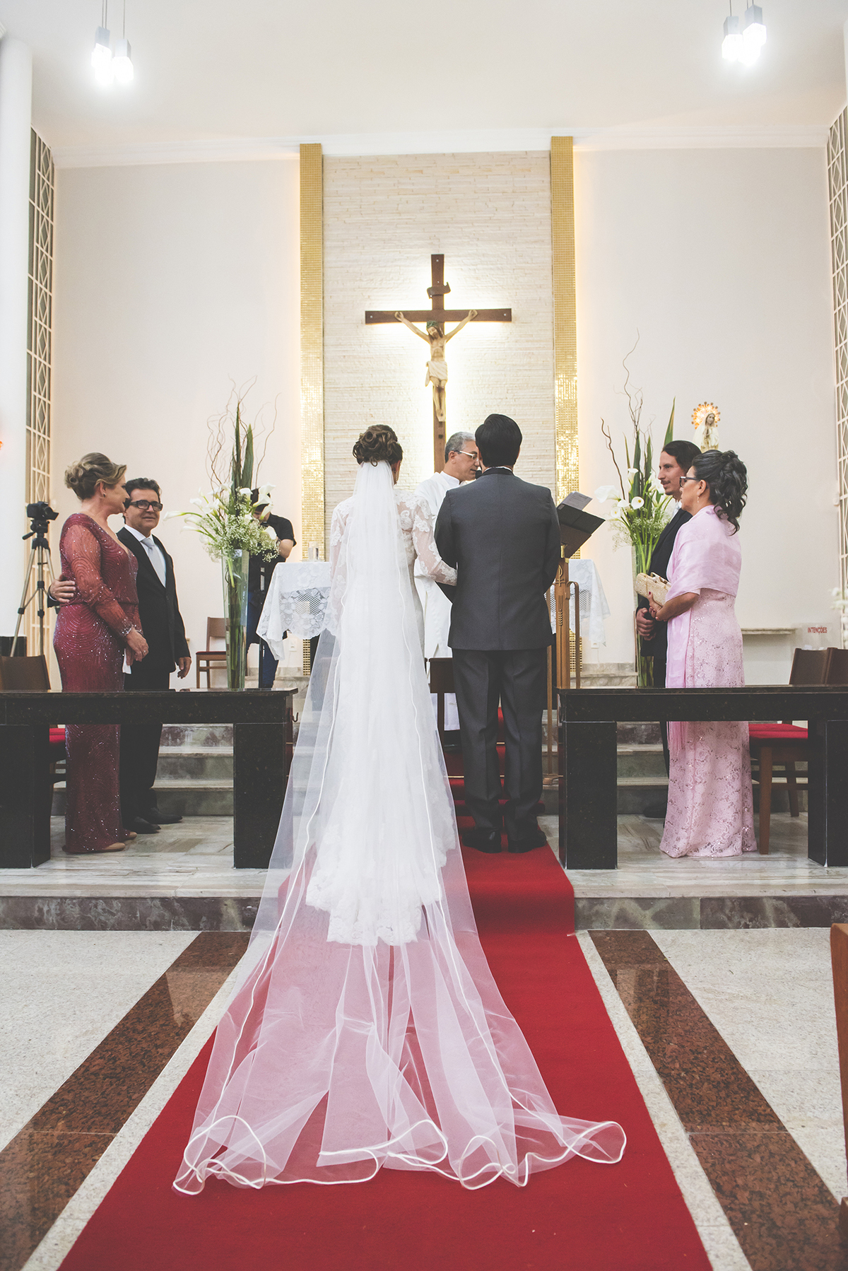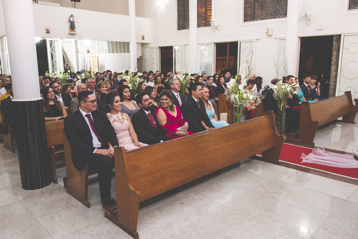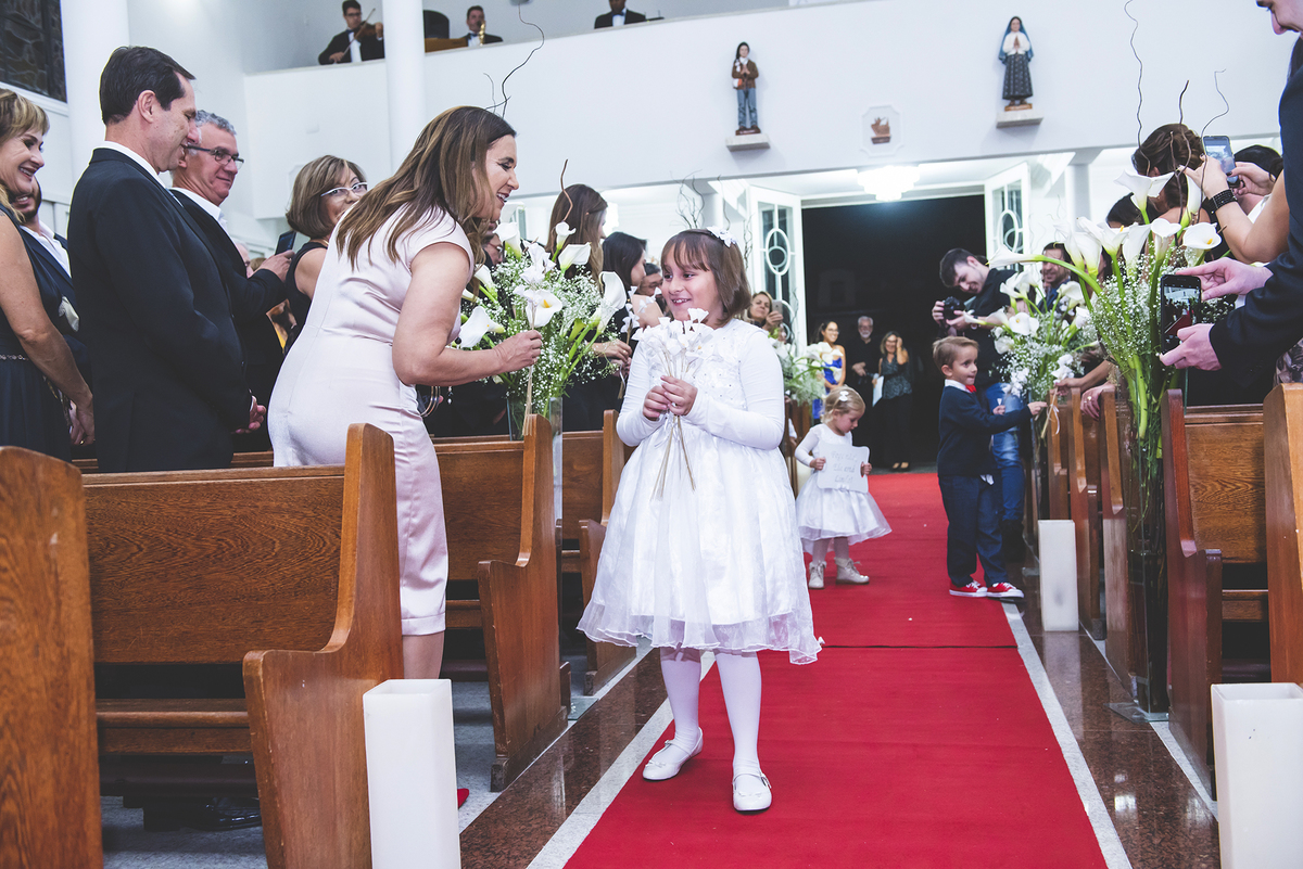 Noiva linda sendo fotografada chegando na igreja de Fátima