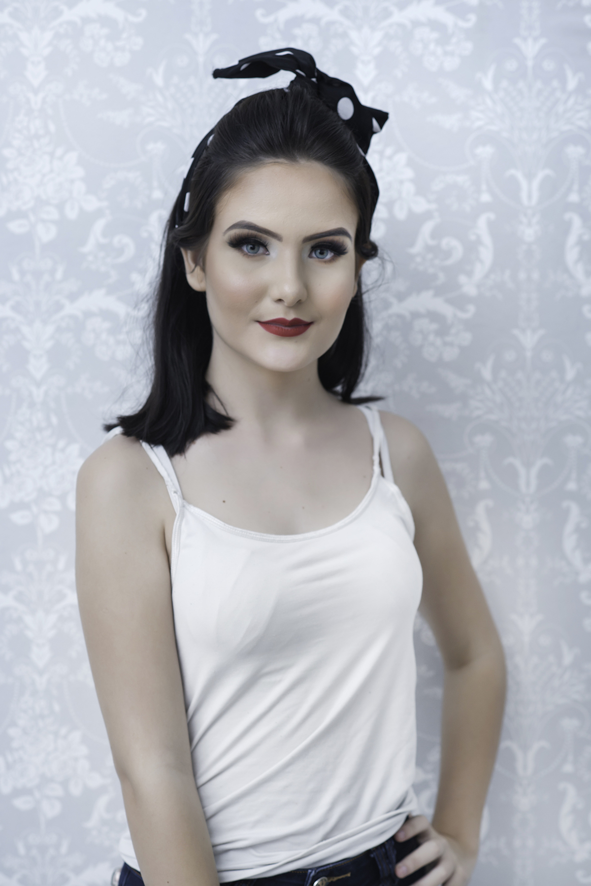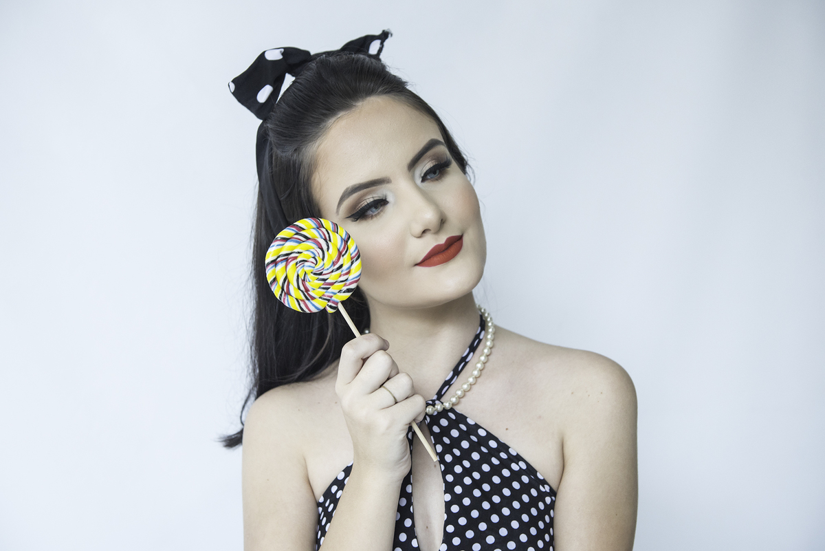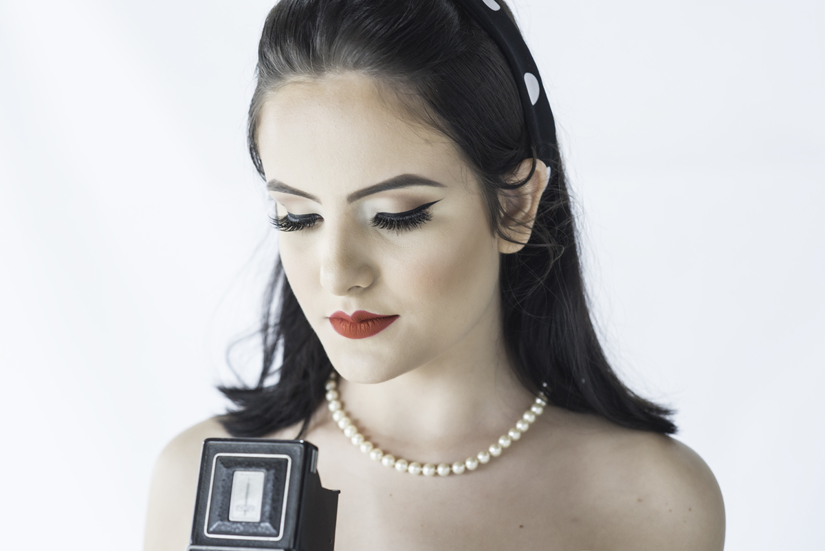 Maquiagem, ela é um grande marco em um ensaio pin-up. A pele deve estar impecável, os olhos, bem delineados, e a boca pede um tom marcante.